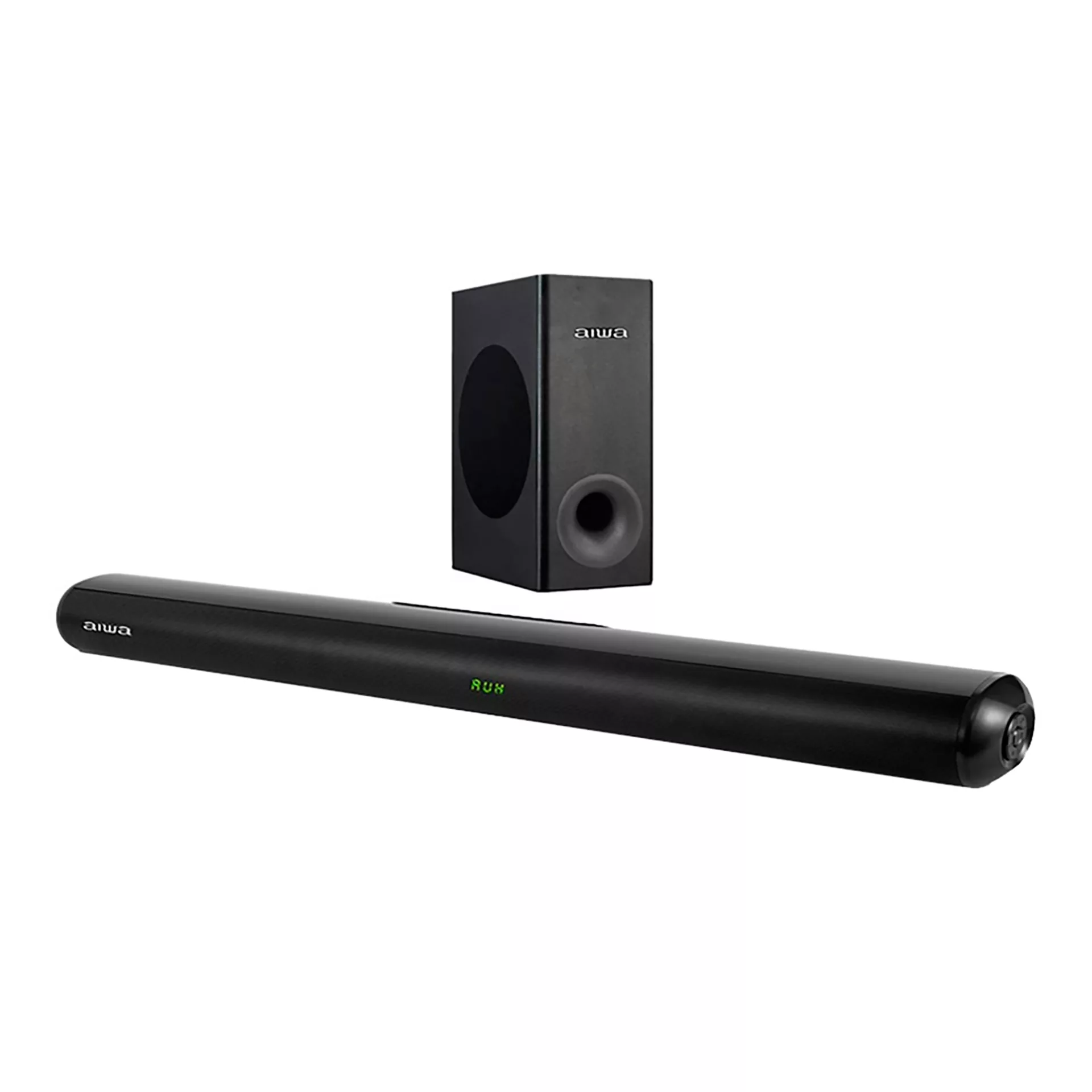 AIWA - BARRA DE SONIDO CON SUBWOOFER INALÁMBRICOAWSBH21WWCANALES: 2.1.POTENCIA DE SALIDA: 120 W RMS.POTENCIA MÁXIMA: 1200 W PMPO.CONECTIVIDAD: BLUETOOTH 5.0.Alcance BLUETOOTH: 10 m APROX.Pantalla LED con 3 preajustes de ecualización.Relación Señal / Ruido: 80 dB APROX.Reproducciones de Puerto USB: MP3, WAV.Puertos: HDMI (ARC) x 1, USB x 1, ÓPTICO x 1, COAXIAL x 1, AUX IN x 1, AC IN x 1.Dimensiones Barra de Sonido: 900 x 85 x 65 mm.Dimensiones Subwoofer: 360 x 300 x 180 mm.Fuente de Alimentación: 100 - 230 V / 50/60 Hz.Color: NEGRO.INCLUYE: CONTROL REMOTO, CABLE DE AUX IN, CABLE DE ALIMENTACIÓN, KIT DE FIJACIÓN A LA PARED.Garantía: 1 año.Contra Defecto de Fabricación.