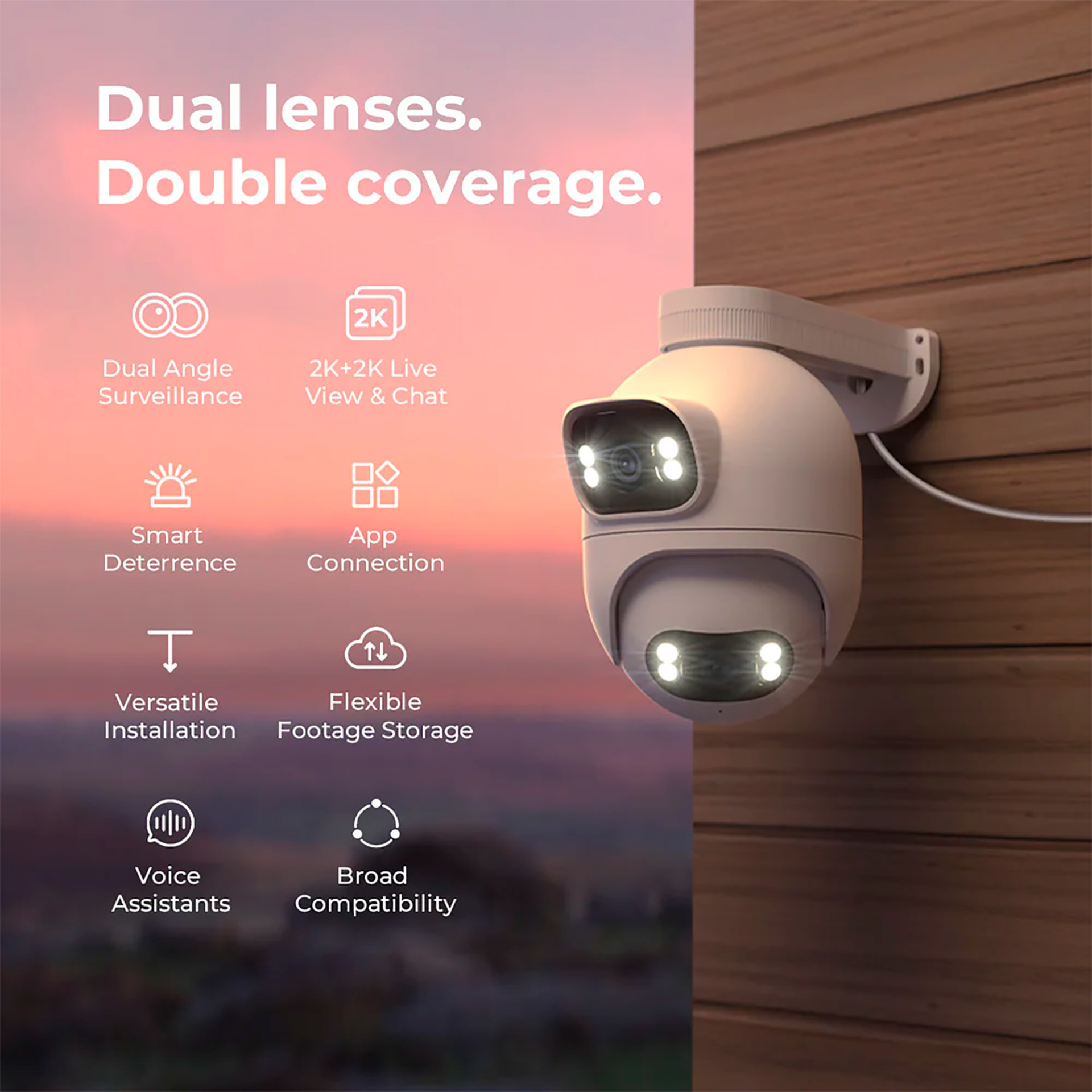 XIAOMI - CÁMARA SPOTLIGHT CABLEADA DE VIGILANCIA DÍA Y NOCHE IMILAB EC6 DUAL - IP65. 2K+2K. AUDIO BIDIRECCIONAL. WIFI. 4 LEDS + 4 INFRARROJAS.