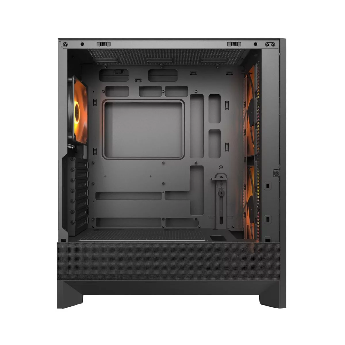 | Sistema de Refriger. | Front 180mm ARGB PWM fan x 2 Rear 120mm ARGB PWM fan x 1 Speed 180mm ARGB PWM fan : 300-1200 ± 10% RPM 120mm ARGB PWM fan : 1200 ± 10% RPM Connector 180mm ARGB PWM fan Connector : 5V 3 Pin (ARGB) / 4 Pin PWM (Fan) 120mm ARGB PWM fan Connector : 5V 3 Pin (ARGB) / 4 Pin PWM (Fan) |