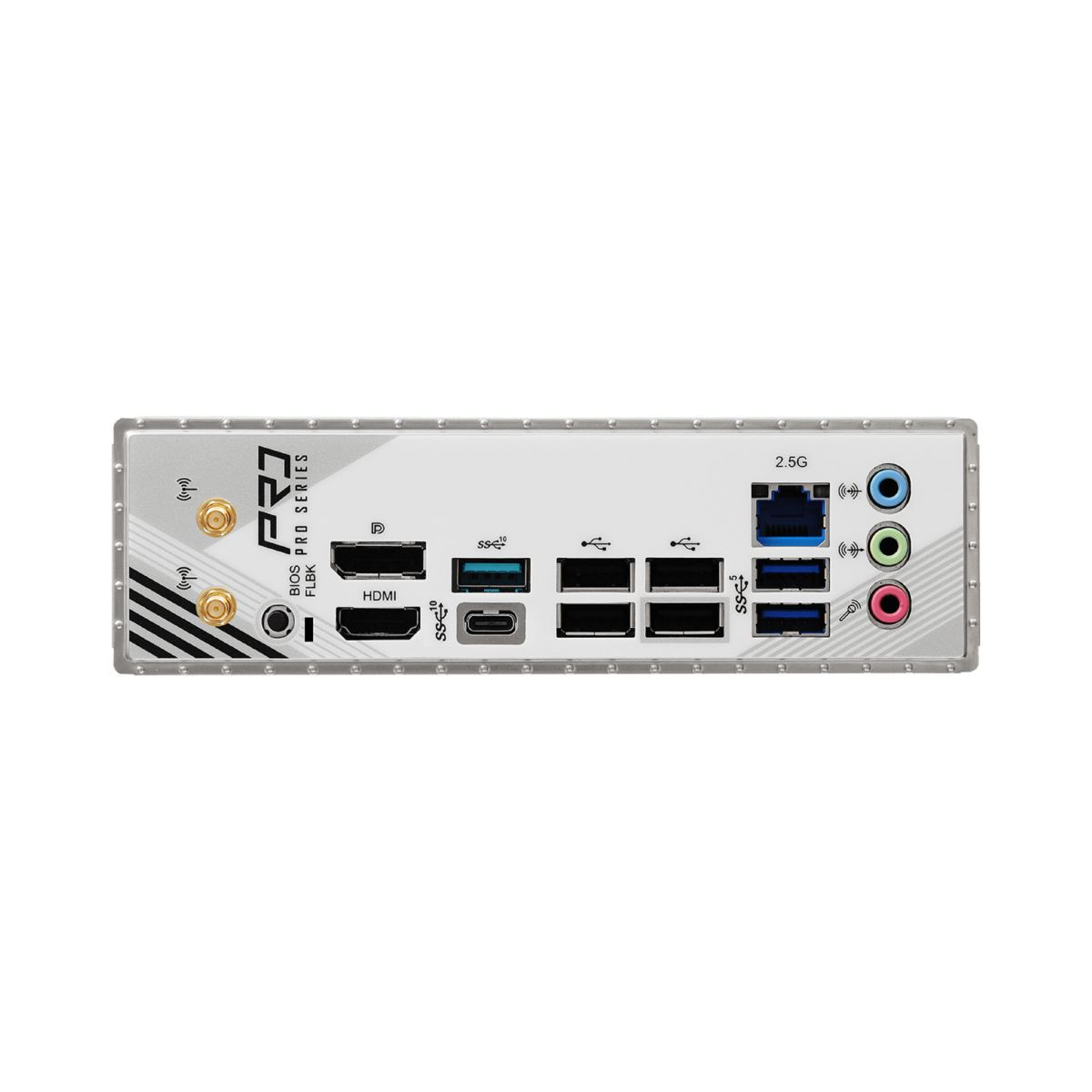 | Panel trasero E/S | - 2 x Puertos de antena - 1 x puerto HDMI - 1 x DisplayPort 1.4 - 1 x puerto USB 3.2 Gen2 Type-A (10 Gb/s) - 1 x puerto USB 3.2 Gen2 Type-C - 2 x puertos USB 3.2 Gen1 - 4 x puertos USB 2.0 - 1 x Puerto RJ-45 |