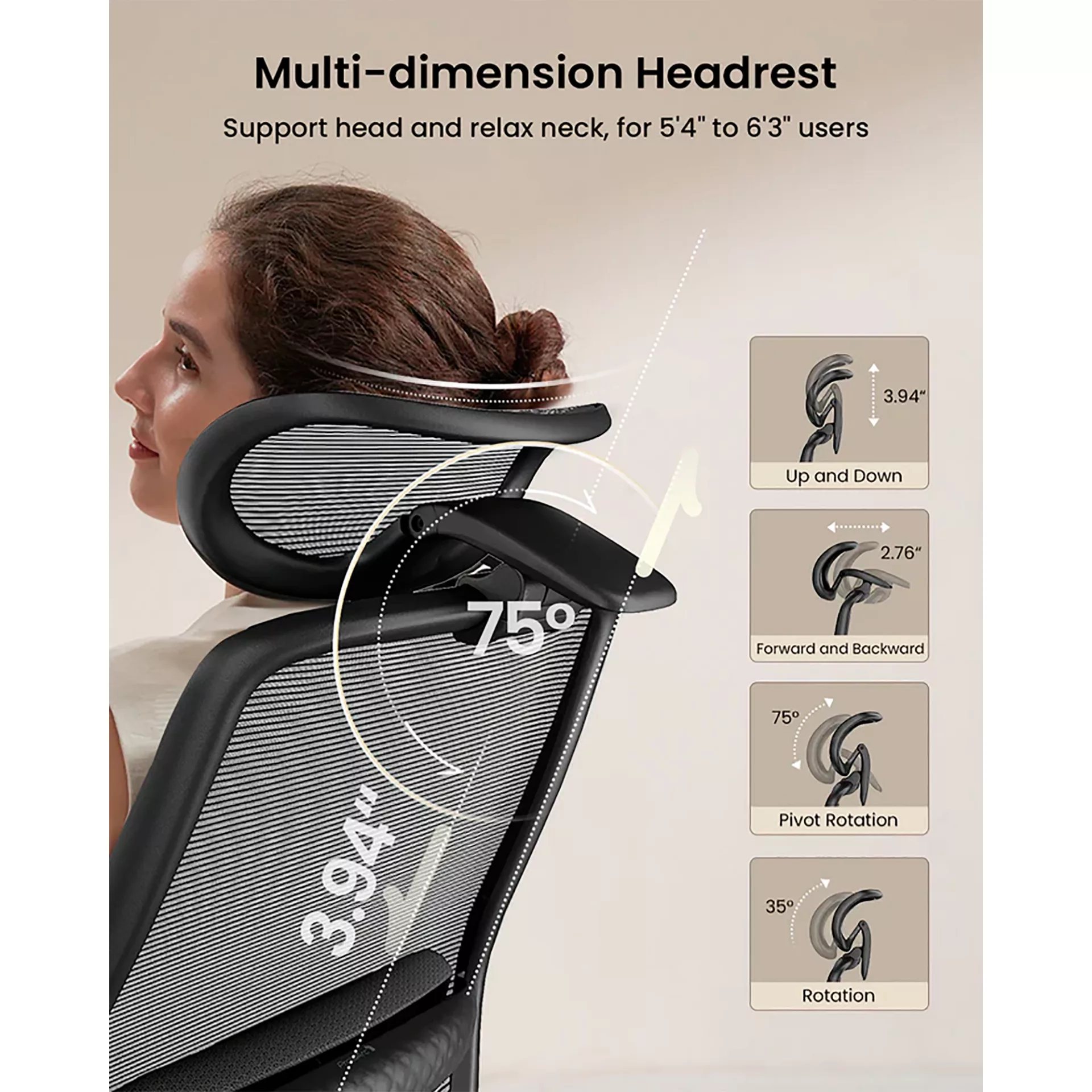 Ajuste del Reposacabezas: Ajustable hacia arriba y hacia abajo 7 cm.