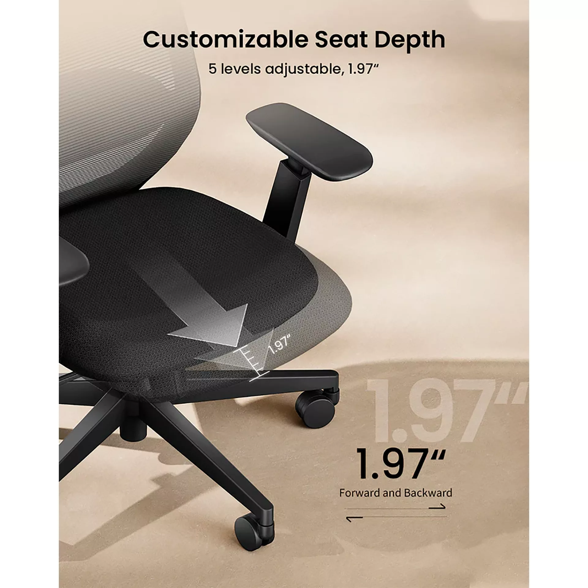 La silla EC200 ofrece un área de asiento increíblemente espaciosa, que brinda un amplio espacio para moverse y una comodidad excepcional. Puede ajustar y posicionarse libremente, y disfrutar de una experiencia de asiento más amplia.
