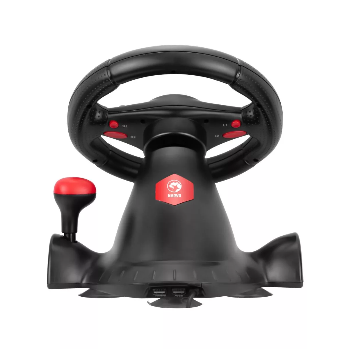 Marca Marvo Part Number GT-903 Consola Compatibilidad PC / PS4 / PS3 / Xbox one / Xbox 360 / Android / Switch Ángulo 270° Conexion USB Color Negro Medidas Volante 220 mm x 270 mm x 230 mm Pedales 210 mm x 200 mm Cable 1.9m Garantía 1 Año