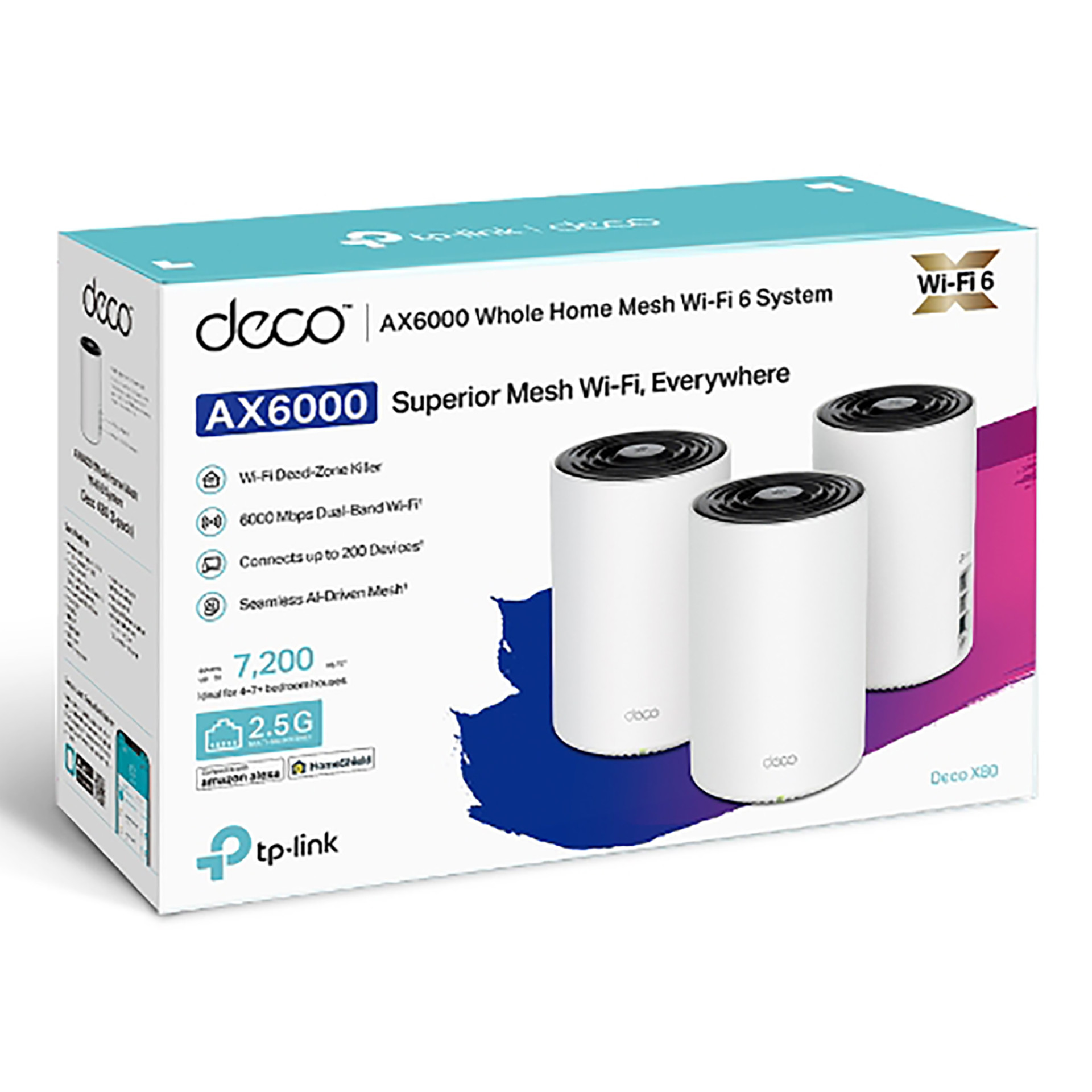 TP-LINK - ACCESS POINT DECO X80 PACK x3 - WIFI DOBLE BANDA AX6000. 2,4GHz 1148Mbps / 5GHz 4804Mbps. 2,5Gbps x1 / GIGABIT x2.
