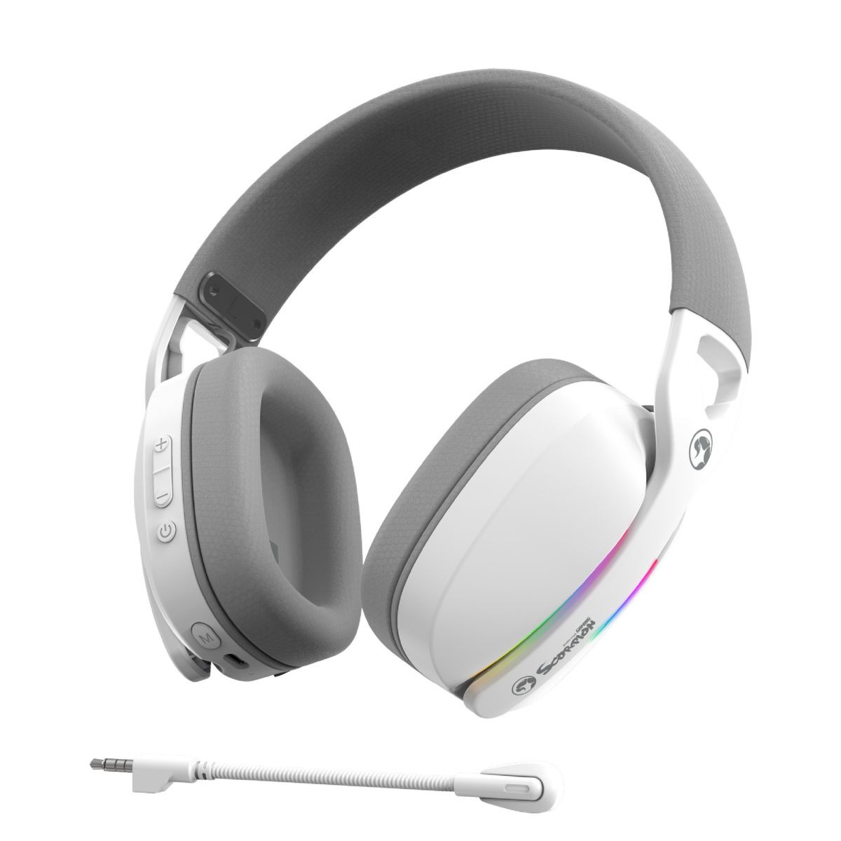 ¡Sumérgete en el juego con los Auriculares Marvo HG9086W! Disfruta de una libertad inalámbrica total y un sonido envolvente 7.1 virtual que te sitúa en el centro de la acción. Su vibrante iluminación RGB y micrófono desmontable ofrecen estilo y funcionalidad. Conéctate sin esfuerzo a PC, consolas y móviles. Equipado con drivers de 50mm para un audio potente y claro. ¡Experimenta un confort duradero y hasta 20 horas de juego en cada partida!