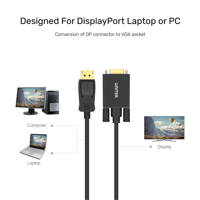 CABLE UNITEK DISPLAYPORT A VGA (Y-5118F) BLACK – 1.8MTS