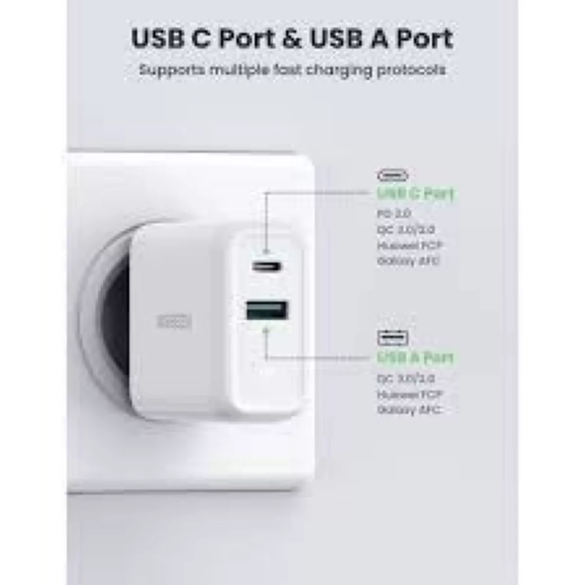 Cargador de pared Ugreen de 38W doble puerto USB + USB-C, carga rápida...
