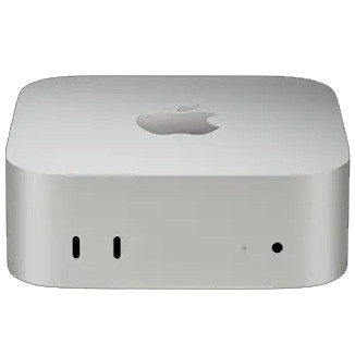 Color plateado (Silver). Construida en Aluminio. Sistema macOS con Apple Intelligence. Procesador Apple M4 10-Core Chip, 10-Core GPU. 16GB RAM unificado. 256GB NVMe SSD. Video Apple de 10 núcleos. Audio HD con parlante integrado. Red 10/100/1000 Gigabit. Wi-Fi 6E (802.11ax), Bluetooth 5.3. Dimensiones: 12.7 x 12.7 x 5.1 cm Peso: 0.7kg