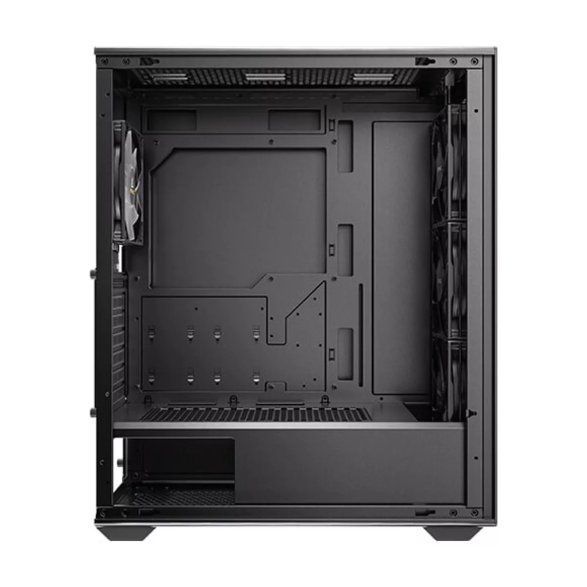 El AX85 ARGB presenta un diseño único y un excelente rendimiento de refrigeración. Su panel lateral de vidrio templado te permite exhibir tus configuraciones de juego sin ningún obstáculo. Se pueden instalar 8 ventiladores de 120 mm simultáneamente.