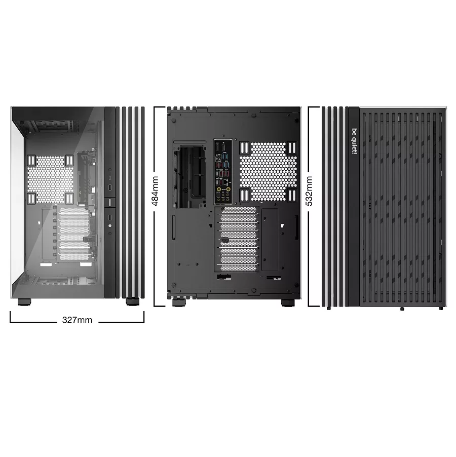 Diseño extra espacioso para hasta dos radiadores de 420mm al mismo tiempo y una placa base E-ATX.