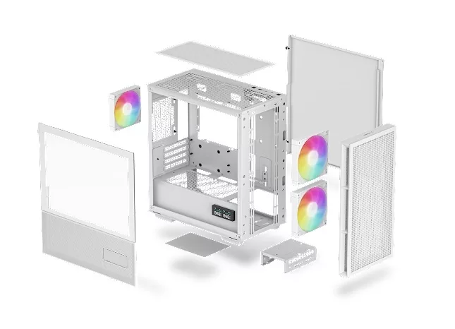 La nueva generación de gabinetes de flujo de aire de DeepCool ha llegado, y son realmente espectaculares. La CH360 DIGITAL WH es una caja mATX de nuevo diseño centrada en aumentar el flujo de aire en todo el chasis. Dos brillantes ventiladores ARGB de 140 mm habilitados para PWM se montan en el frontal del compartimento principal de color blanco puro, un panel lateral híbrido y una pantalla digital de doble estado diferencian a la CH360 DIGITAL WH de la competencia.