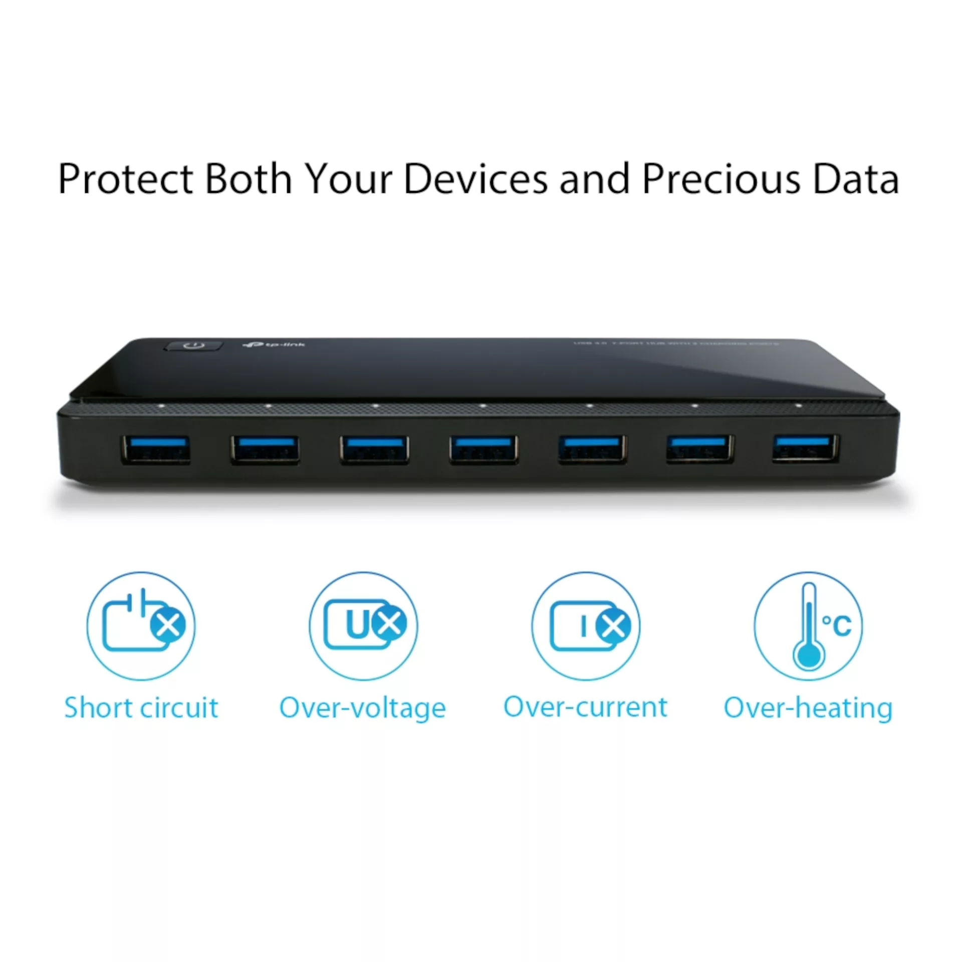 TP-LINK - HUB USB TAPO UH720. MULTIPLES PROTECCIONES. INDICADOR LED. X7 PUERTOS USB 3.0, X2 PUERTOS USB 3.0 2.4A. COLOR NEGRO.