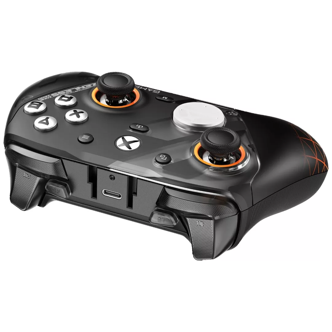 Especificaciones: Color negro y plata con detalles naranja Conectividad triple: Cableado e inalámbrico para Xbox y PC, Bluetooth 5.3 para Android Joysticks: Joysticks GameSir Mag-Res Disparadores: Disparadores analógicos de efecto Hall con topes de disparo de microinterruptor ABXY: Microinterruptor óptico D-pad: Microinterruptor mecánico Motores Rumble: 4, uno en cada empuñadura y gatillo Botones reasignables adicionales: 4 (botón trasero R4/L4 y mini bumper R5/L5) Pestillos de botón