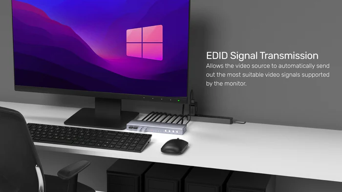 Su diseño compacto facilita la instalación, mientras que la conmutación rápida entre dispositivos mejora la productividad sin complicaciones. Además, su construcción robusta asegura durabilidad y rendimiento confiable en uso intensivo.