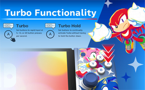 Su diseño cómodo y ligero, junto con empuñaduras ergonómicas, permite largas sesiones de juego sin fatiga. Presenta ilustraciones inspiradas en Sonic y sus amigos, con licencia oficial tanto de Nintendo como de SEGA, lo que lo convierte en un accesorio atractivo para fanáticos. Es ideal para jugar en modo portátil o con tu consola colocada sobre una superficie.